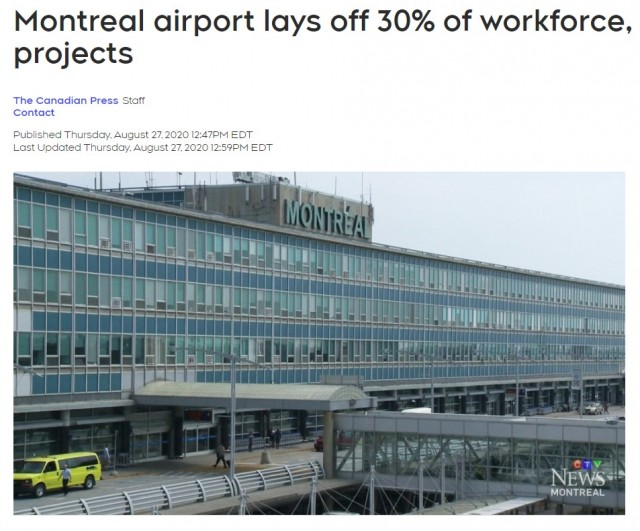 拥有600名员工的蒙特利尔机场周四宣布,因为新冠病毒疫情影响,取消172个工作职位,约占其员工总数的30%,同时宣布暂停大多数项目,预计恢复正常需要数年时间。