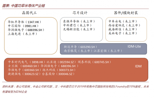 从产业链角度,国内涉足功率半导体行业的公司分为几种。