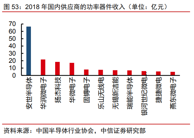 在国产替代方面,功率半导体追赶的技术难度相对较小,国内配套的产业链也更完整。