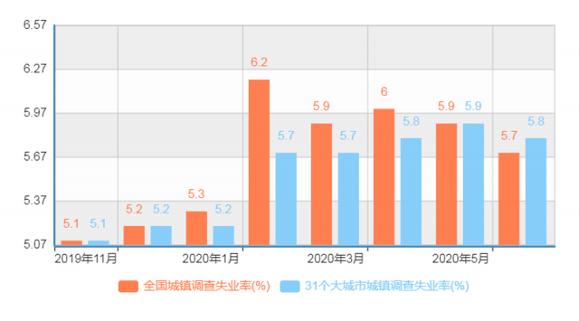 根据中国国家统计局发布的最新数据,2020年上半年,不仅城镇新增就业人员同比少增173万人,外出务工的农村劳动力在二季度末同比减少496万人,下降2.7%。6月,大学生失业率创同期新高,中国全国20岁至24岁大专及以上人员,调查失业率达到19.3%,到了7月与8月,该群体失业率仍居高不下。据李克强在上海考察现场称,今年中国高校毕业生874万。