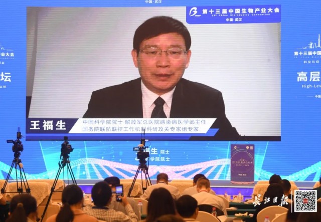 解放军第302医院肝病生物治疗研究中心主任、全军传染病研究所所长、中国科学院院士王福生在大会上进行了线上演讲,介绍了中国新冠疫苗研发的最新进展,并表示“中国新冠疫苗研发处于国际第一梯队”。