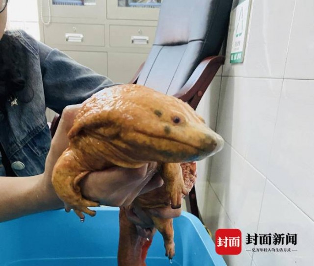 随机,在贡井区禁渔、退捕联动执法机制作用下,贡井区公安部门及时通知渔政执法机构将这条鱼接收,再转交区农业农村局高级水产工程师进行专业鉴定,最终鉴定确认为国家二级保护动物(水生)大鲵。大鲵是我国特有的名贵珍稀水生物,在自然界中存活数量很少,因其叫声酷似婴儿的哭声,又在水中生活,所以有娃娃鱼的俗称。金色的娃娃鱼,实属罕见。