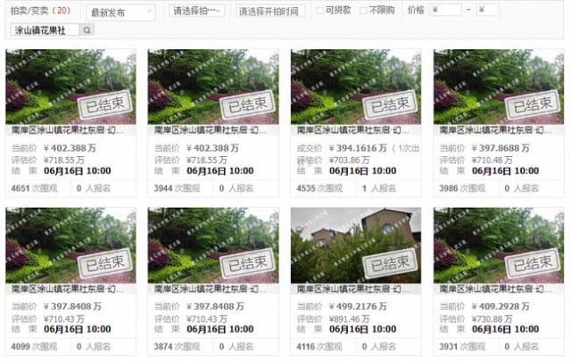 不过,这场拍卖最终以流拍告终。直到十多天后的二次拍卖中,才有一套别墅以394.16万元价格成交,仅相当于其评估价703.86万元的56%,而更多的别墅仍在“等待”中,谁也不知道“复活”或者“灰飞烟灭”那天,会在什么时候到来。