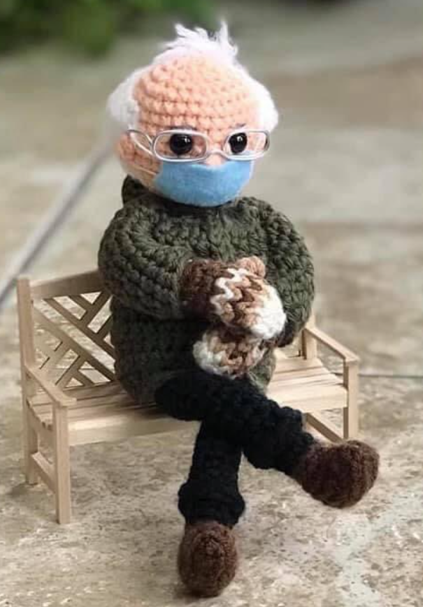据BuzzFeed News报道,Sanders的手套是在2016年时竞选民主党总统候选人时,某学校二年级老师亲手编织并送给他的。