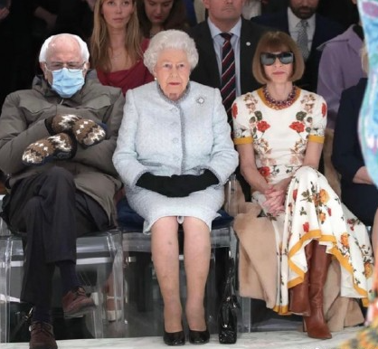 当天,众多政客、明星都打扮了一番,唯独Sanders独自戴着口罩,裹着一件朴实厚大的外套,带着连指手套,翘着二郎腿窝在椅子上,与其他坐在国会大厦台阶上的人们形成鲜明的对比,从而引起全民注意。这张照片随后蔓延全球社交平台,让老爷子一夜爆红,成为“表情包”中的顶级流量。