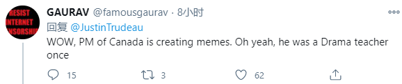 “哇,杜鲁多也用了表情包,哦对,他以前是戏剧老师!”