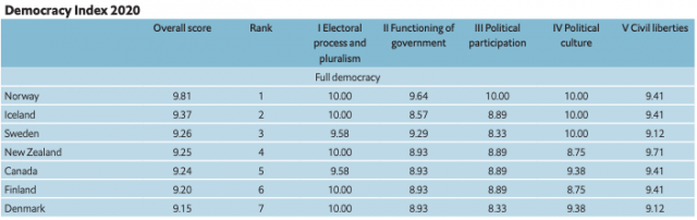 https://pages.eiu.com/rs/753-RIQ-438/images/democracy-index-2020.pdf?mkt_tok=eyJpIjoiTURZM1lXWm1aVEJsTjJWaiIsInQiOiJOS2FDeG5DTk1oOTVKQ2kwOUR3V25GVFY3SWdNQSs2blVDOXJNbk1vRUtnQk5vWFhXaWx5ZVwvVUtGbmhaQkRmUGQwQzZwNHBSeEhYVU82VWFiWGZxdjJTalkwSmFTOHV1NjdBTjU4SHB6bFFDQmNzWkRGb2ZcL0ZhMnJibUErRUlQIn0=