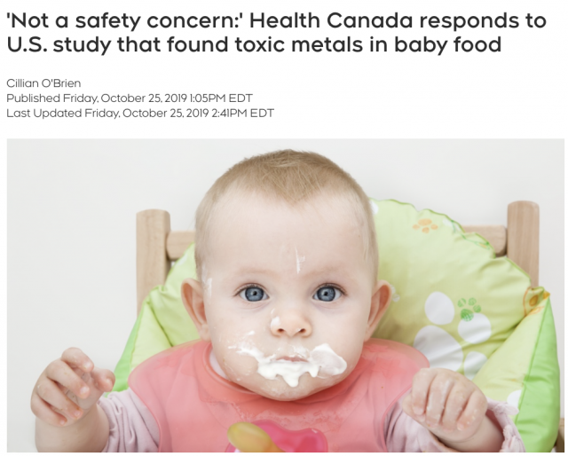 加拿大当时也曾回应这份报告,卫生官员称婴儿食品中发现的有毒重金属“不构成安全隐患”。