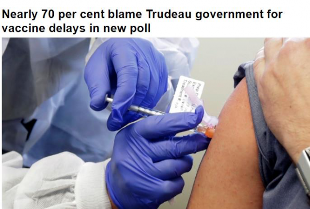 尽管总理杜鲁多一再强调会按时令大多数加拿大人接种新冠疫苗,但是最新的民调显示,绝大多数加拿大人都认为疫苗的延迟交付是联邦政府的责任,而非省政府的责任。