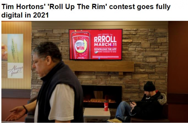 由于新冠疫情继续肆虐,加拿大最著名的营销抽奖活动--Tim Hortons 卷杯沿抽奖(Roll up to Win),今年将全面改成数字化。
