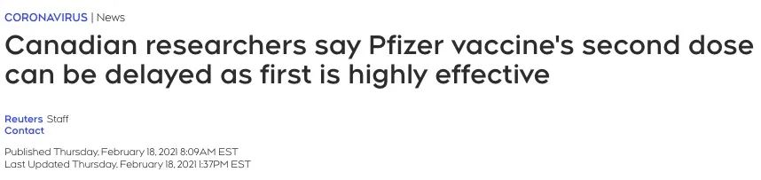 而且小编今天还看到有新闻说,两位加拿大研究人员最近居然呼吁,让所有人都先只注射第一剂辉瑞疫苗,因为第一针有效性和保护性已经足够,每人两剂疫苗的接种时间实在太长了。